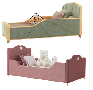 Z01-0716北欧布艺儿童单人床,毛绒玩具