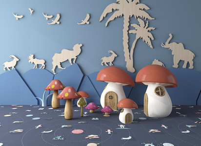幼儿园卡通蘑菇房雕塑摆件叶子树剪影树造型,