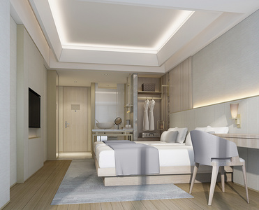 现代酒店客房套间,双人床,标准间,衣柜,梳妆台