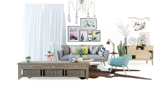 G31-16北欧现代沙发组合电视柜玄关柜 (1)