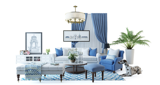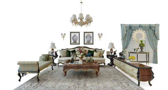 H48-16欧式法式美式沙发茶几卧榻窗帘组合电视柜