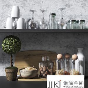 厨房用品,玻璃调料罐瓶子碗,盘子,置物架
