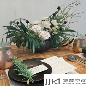 欧式圆形餐桌餐具摆件。玻璃花瓶