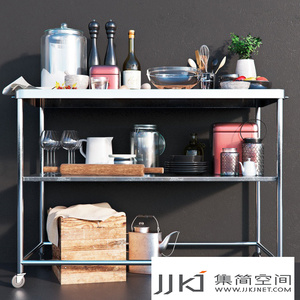 金属备餐车,小推车,餐具水壶餐具厨具 (1)