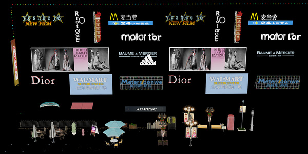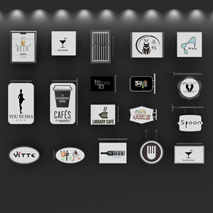 现代指示牌商业广告牌遮阳伞霓虹灯铁艺路灯