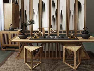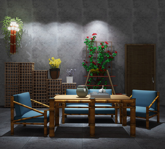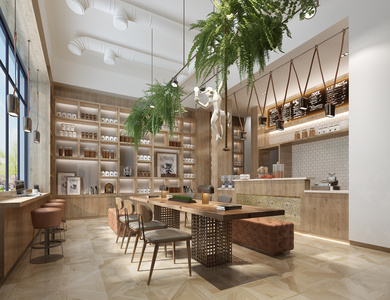 H98-0730工业风咖啡厅水吧台调料罐木桌子皮革凳子吊装植物