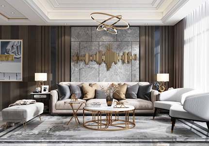 Z30-1213新中式酒店大堂吧休闲区新中式沙发茶几台灯落地灯