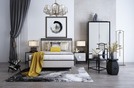 卧室双人床床头柜组合