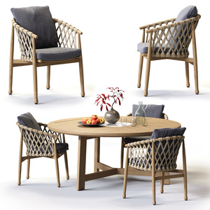 竹编餐桌椅组合
