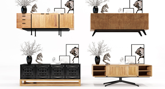 新中式工业风电视柜边柜花瓶马头雕塑