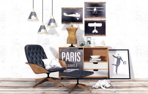 工业风边柜电视柜装饰柜美式休闲椅子吊灯毛老鼠