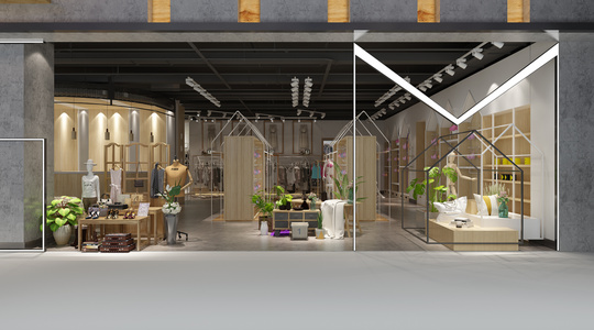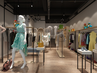 女装服装专卖店门头衣服货架