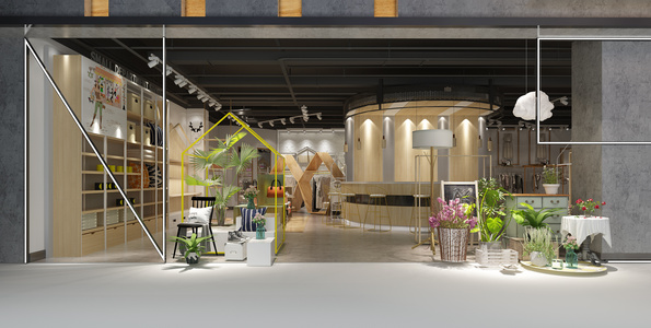 服装家具用品专卖店门头展台展柜花艺盆栽展台