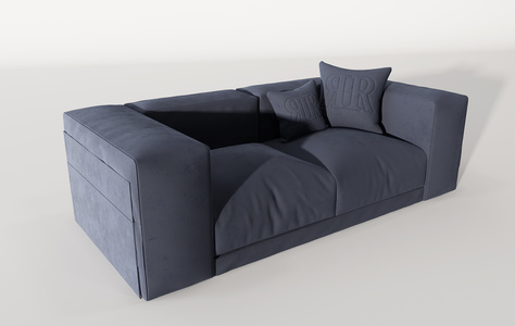 深蓝布艺双人沙发