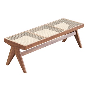 北欧木质藤编床尾凳,长条凳