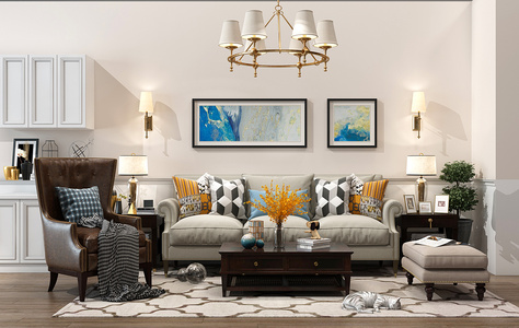 H02-0304美式欧式田园地中海沙发茶几高靠背沙发铁艺吊灯