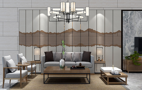 H09-0117新中式沙发茶几椅子电视柜吊灯组合