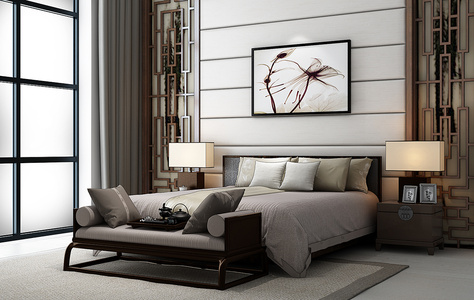 H16-0101新中式床立体画