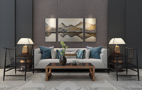 Z04-1228新中式沙发茶几椅子屏风