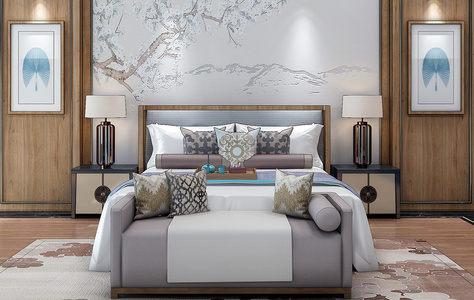 H04-1224新中式床床尾凳榻休闲沙发圆几边几