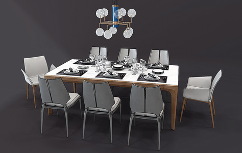 H138-1201现代餐桌椅吊灯组合