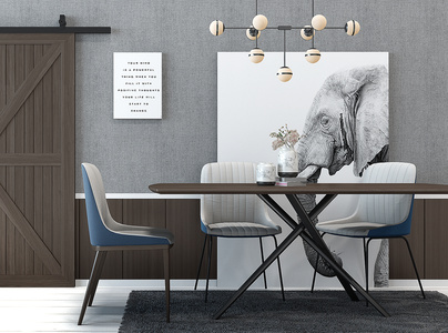 H43-1210北欧餐桌椅挂画