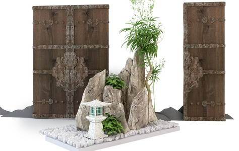 Z01-0615园林景观石头木门