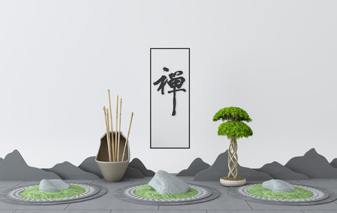 H03园林石头墙景观毛石墙假山山脉石头片石盆景祥云