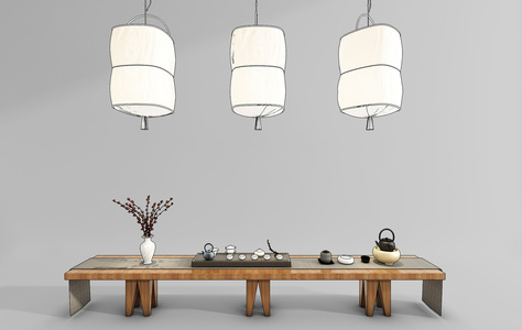 H03-1106中式实木茶台屏风隔断吊灯组合
