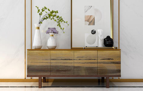 Z04-0302新中式现代轻奢边柜电视柜玄关柜摆件花瓶