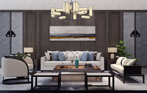H02-0116新中式沙发茶几边几台灯靠包组合