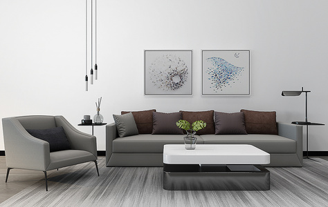 Z02-1227现代转角沙发茶几吊灯装饰画组合