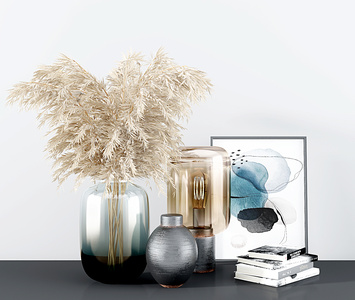 现代装饰品摆件,花瓶,台灯,书籍书本