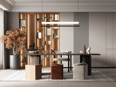 现代样板间书房书桌椅