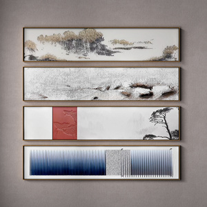 新中式长条横条山水装饰画_挂画