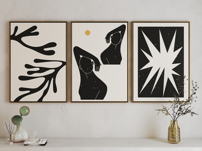 现代线稿白描艺术挂画
