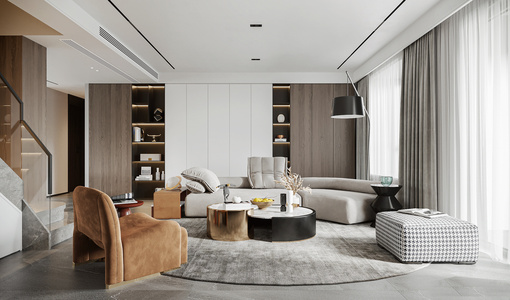 现代别墅客厅餐厅沙发