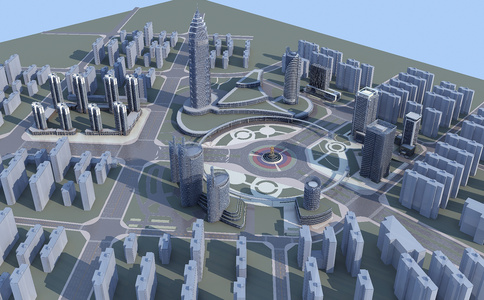 城市模型 城市鸟瞰,配楼楼房