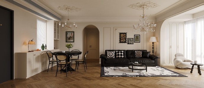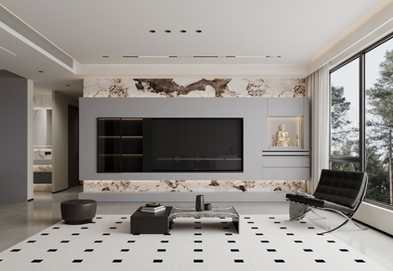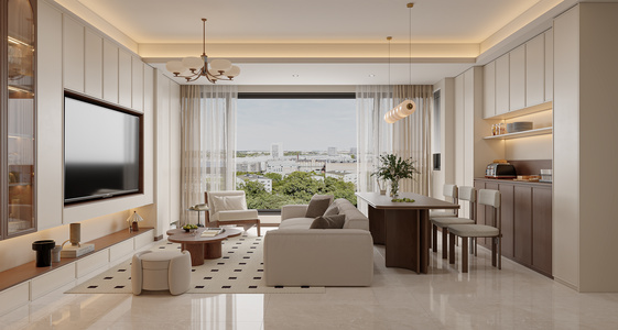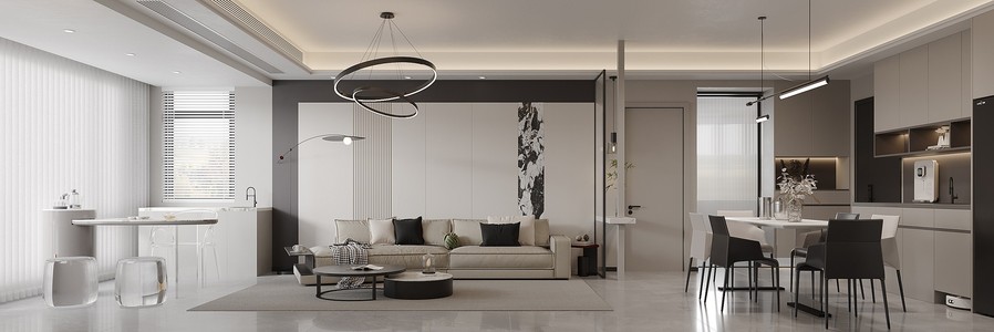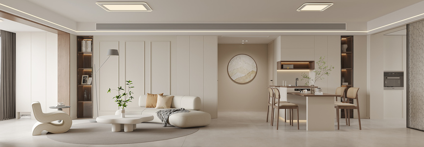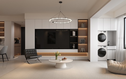 客餐厅现代客厅橱柜电视背景墙,奶油风休闲椅