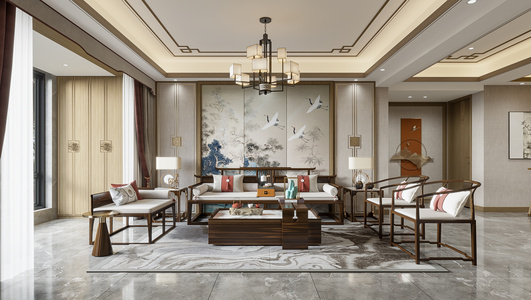 14新中式客餐厅,沙发茶几电视柜,餐桌椅