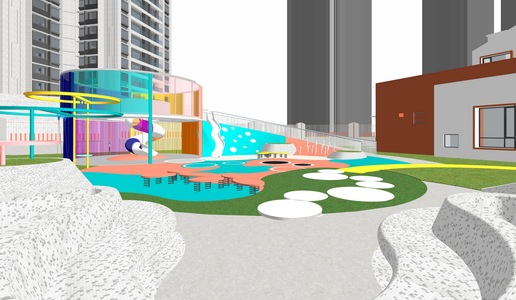 保利顶级现代童趣花园网红示范区商业及幼儿园模型