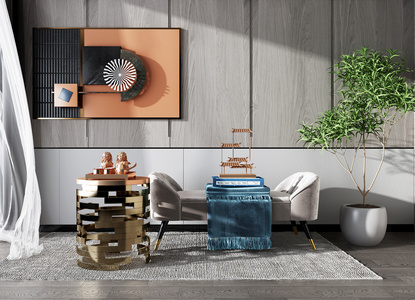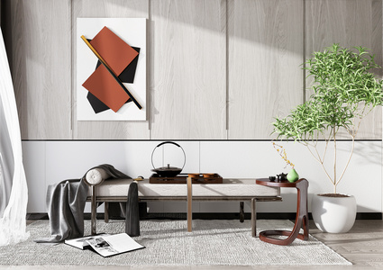 新中式床尾凳,脚踏,绿植盆栽,饰品摆件