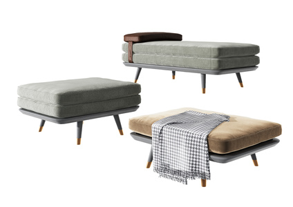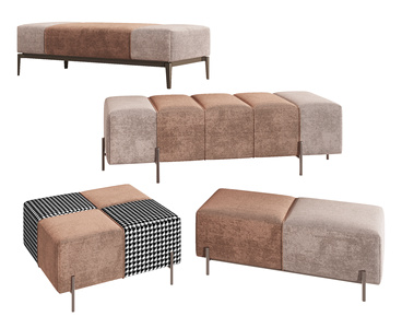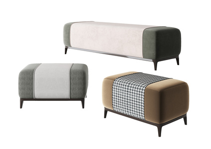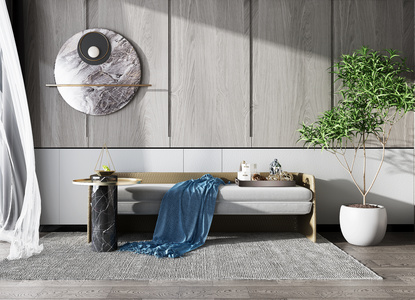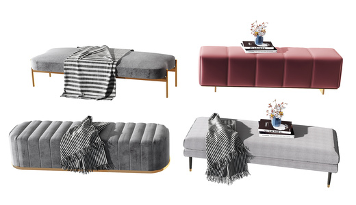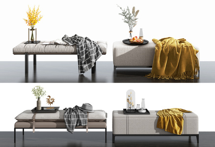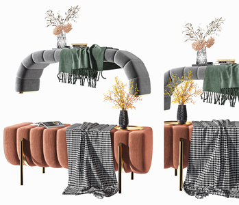 现代布艺床尾凳,角几,绿植盆栽,饰品摆件
