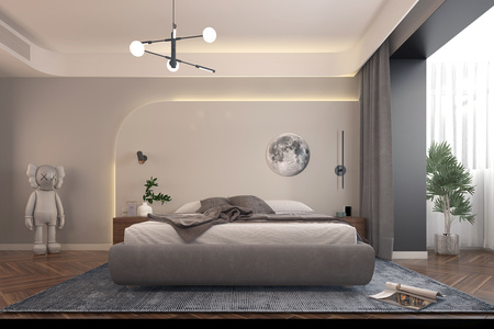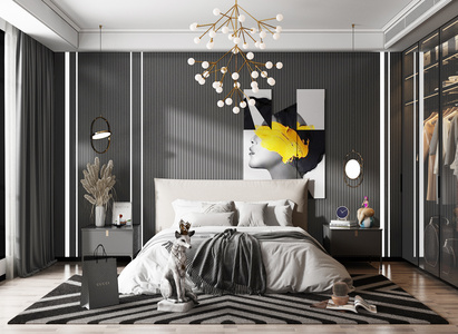 卧室主人房,双人床床头柜,衣柜球形吊灯