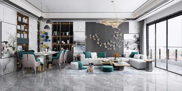 37现代轻奢简欧式客餐厅,软包沙发,茶几组合,单人休闲沙发椅,美人榻,床尾榻,餐桌椅,背景墙,装饰展示柜,饰品,摆件 3