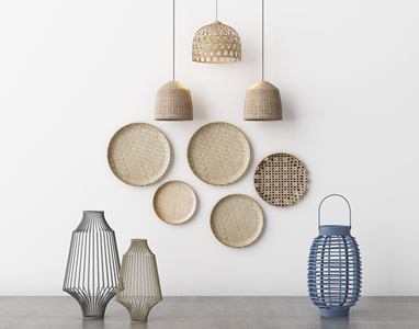 编织吊灯落地灯组合