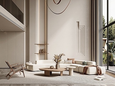 现代奶油风别墅客厅