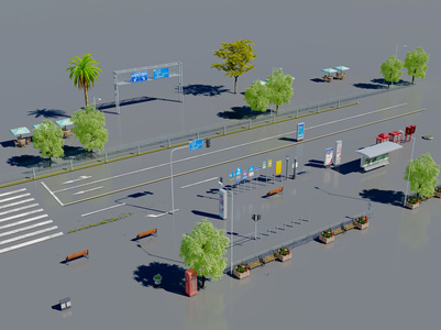 现代道路,马路公路,指示牌户外树木