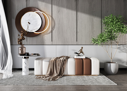 现代床尾凳,角几,绿植,饰品摆件
