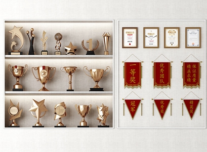 荣誉证书奖杯奖牌奖状荣誉墙锦旗